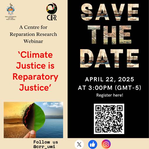 The Centre for Reparation Research invites you to participate in our webinar ‘Climate Justice is Reparatory Justice' on April 22nd, 2025, at 3pm JA time.