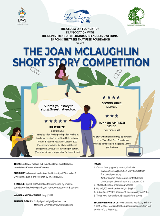 The Joan McLaughlin Short Story Competition is back for a second year and is open to all UWI students who love the written word. Submit your stories by April 11, 2022, for a chance to win one of three prizes.