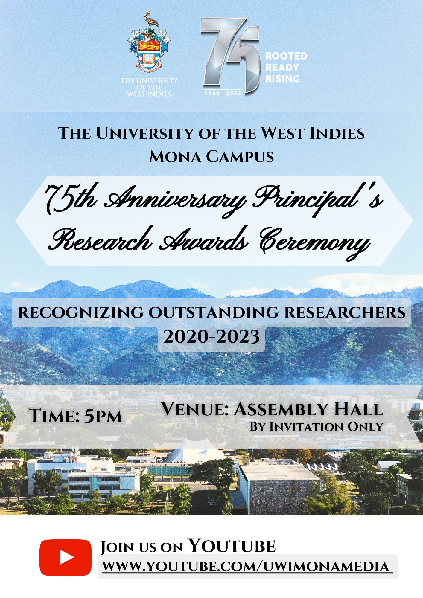 In commemoration of our 75th Anniversary, the UWI-Mona will host the Principal Research Awards, recognizing UWI researchers across a number of categories.